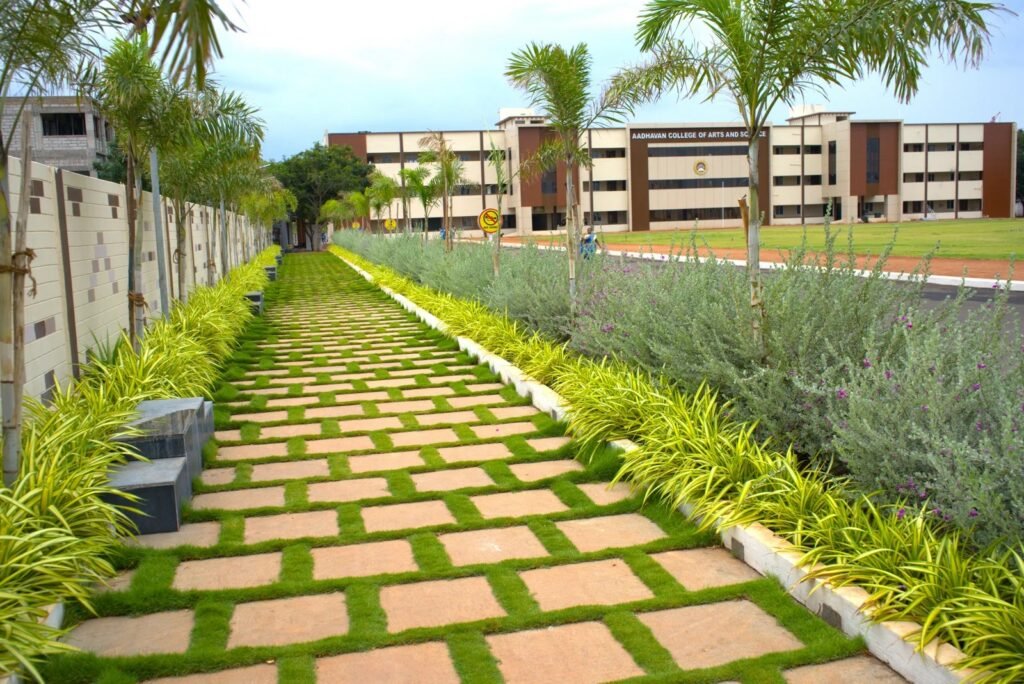Step into a space where nature and relaxation meet — the Walk Park at Aadhavan College offers students a refreshing escape from the academic hustle. Surrounded by lush greenery, flowering trees, and meandering stone pathways, our walk park is designed to promote mindfulness, well-being, and casual conversations among friends.