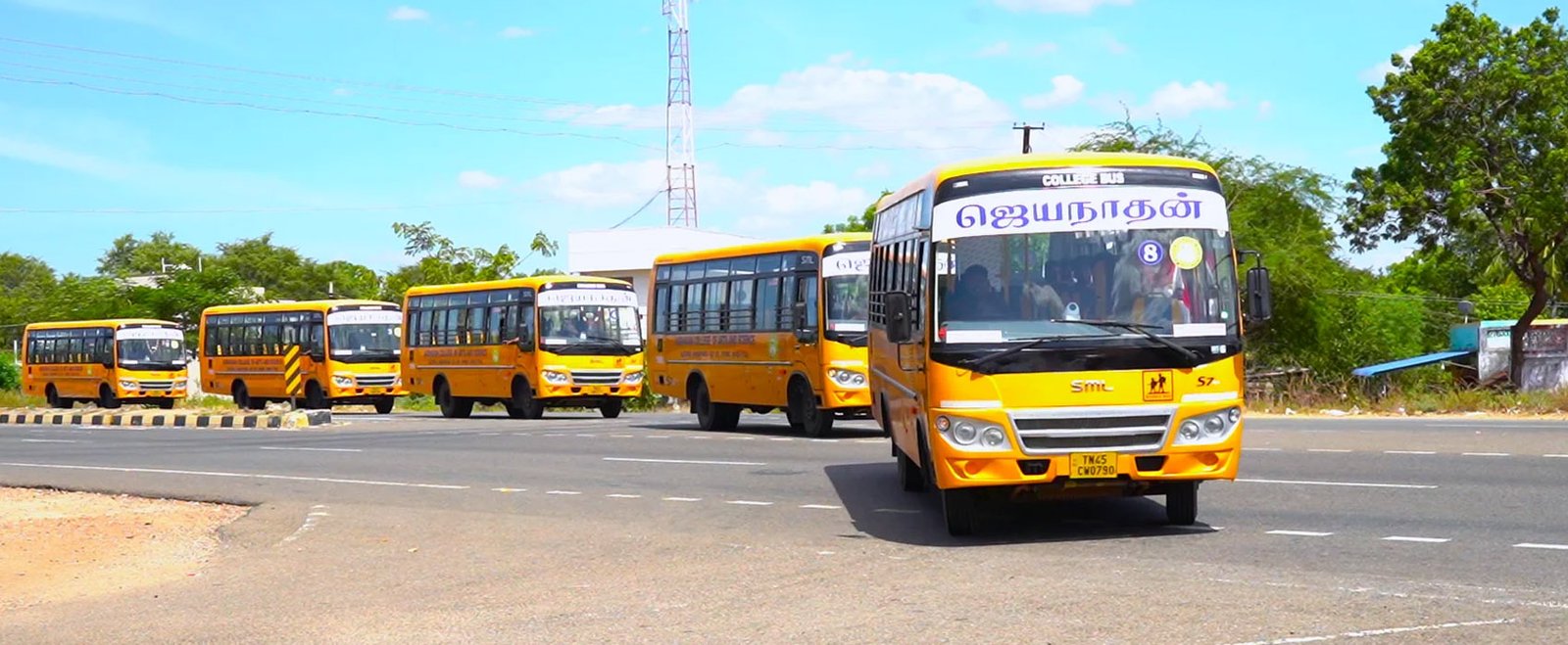 College buses operate on 40+ routes ensuring every student reaches safely and on time.